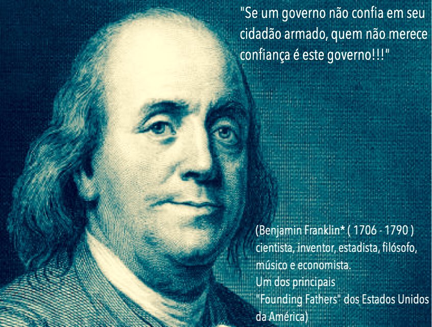 "Se um governo não confia em seu cidadão armado, quem não merece confiança é este governo!" (Benjamin Franklin um dos "Pais Fundadores do EUA").